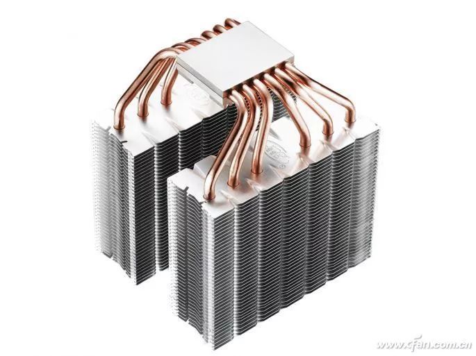 有關散熱鰭片材質的爭議始終沒有停歇過,如果可以解決銅質熱管與鰭片之間的熱阻問題,那鋁質的散熱鰭片要優于銅,因為前者的熱容遠大于銅,相同面積可以吸收更多熱量,而這也是為什么高端臺式機散熱器都會采用大面積的鋁鰭片,并使用大量熱管均勻地插在鋁鰭片的不同位置上。