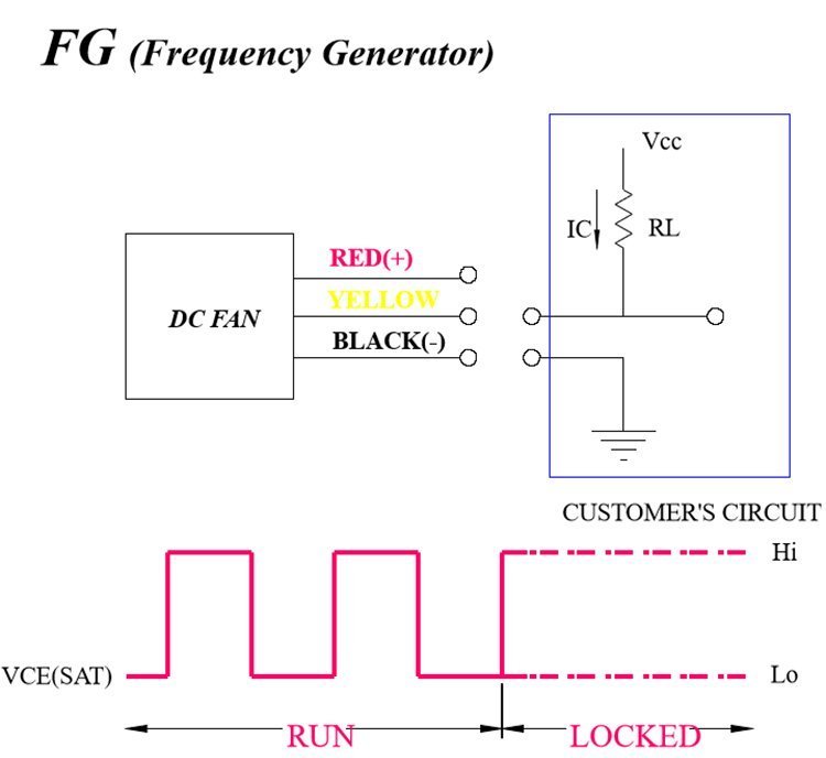 風扇在運轉時,四極風扇每轉一圈會輸出四組波形,電腦可以依此波形來計算風扇的轉速高低,來判定風扇的轉速是否正常。